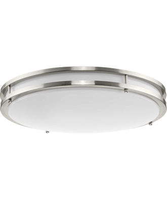 The Abide Integrated LED Large Round Flush Mount Light is precision crafted for contemporary settings. Sleek Brushed Nickel circular bands hold a white acrylic diffuser concealing its 5 CCT selectable (2700K, 3000K, 3500K, 4000K and 5000K) dimmable LED light source.
