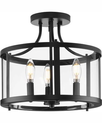 Progress lighting Gilliam 13 in. 3-Light New Traditional Semi-Flush Mount Matte Black