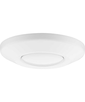 Illumination: The light can be adjusted to offer standard downlight, accent light, wall washer, or sloped ceiling light. An integrated ceiling pitch indicator makes adjusting the light to match the ceiling pitch easy. Application: Elevate any room's design with the Intrinsic Collection 1-Light Satin White Modern LED Surface Mount Eyeball Downlight ideal for any bathroom, bedroom, bonus room, bar, great room, kitchen, living room, work area, utility, or storeroom. suitable for residential and commercial applications. Styles: Perfect for contemporary, modern, traditional, and transitional style settings. Finish: Clean profile is coated in a crisp satin white finish. Materials: Constructed from aluminum to ensure a long product lifespan. installation to a standard height junction box is made easy with the intuitive snap spring design. 15.8w dimmable LED is included, 3000K, 90CRI with 1000 delivered lumens. Dimensions: Measures 7-1/4-inch diameter by 1-1/2-inch height. Certifications: cCSAus damp location listed, ENERGY STAR qualified, meets California Title 24 JA8-2016. Pairs With: Pairs with a variety of Progress Lighting fixtures. Warranty: Our 5-Year Limited Warranty guarantees your complete satisfaction with your purchase and includes professional after-sales customer service support.
