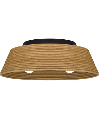 Part of the Quoizel Naturals series, the Zahara flush mount exemplifies modern farmhouse style. The natural bamboo shade adds a touch of global, bohemian style while casting a warm ambient glow. With a contrasting matte black finish, the Zahara ceiling light is a perfect addition to any hallway, foyer, bedroom, bathroom, or home office.