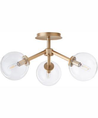 Picture this 3-light Ceiling Flush Mount in your home or office. Refresh your room with this Aged Brass -finished Ceiling Flush Mount by Quorum.