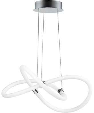 The 23"W Tracer LED Pendant in Polished Chrome is a stunning addition to any contemporary home. Its unique design features white tubing playfully bent into an intriguing Mobius loop, creating a captivating visual that draws the eye. The polished chrome finish adds a touch of sophistication and modernity, making it a versatile piece that complements various interior styles.