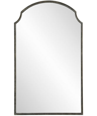 Beautiful arch top metal frame featuring scalloped corners. Hints of gold and silver complement the rich bronze finish, making this frame a great choice for a variety of bathroom vanities, or over an accent table in the foyer.