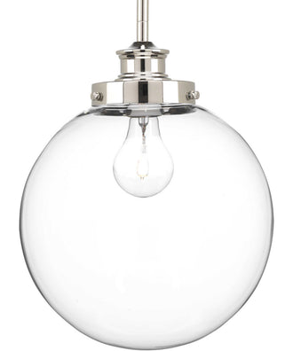 The Penn pendant light features a sleek, polished nickel finish that exudes sophistication and luxury. The clear glass globe, with its smooth, rounded shape, offers a contemporary twist on vintage electric design. This harmonious blend of old and new makes it an ideal choice for various interior styles, including farmhouse, transitional, and vintage electric themes.