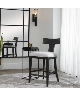 This Modern Take On A Klismos Design Features A Curved Rubber Wood Frame That Has Been Wire Brushed And Rubbed In A Charcoal Black Stain, Paired With A White Slubbed Performance Fabric Cushion. Seat Height Is 26".Uttermost's Furniture Combines Premium Quality Materials With Unique High-style Design.With The Advanced Product Engineering And Packaging Reinforcement, Uttermost Maintains Some Of The Lowest Damage Rates In The Industry. Each Product Is Designed, Manufactured And Packaged With Shipping In Mind.