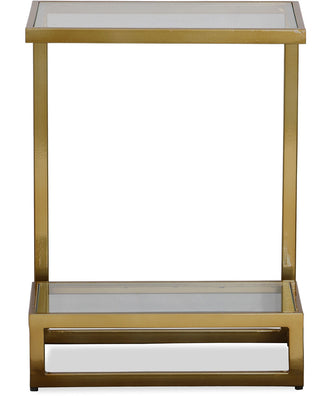 • Features: The musing accent table combines functionality and style. the streamlined iron body is finished in brushed brass with double floating glass, perfect to rest your favorite book and a beverage.