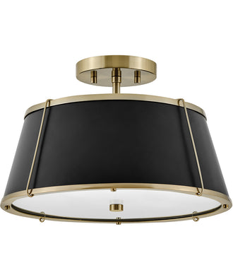 The Clarke 2-Light Medium Semi-Flush Mount in Warm Brass by Hinkley is a perfect blend of modern elegance and timeless sophistication. This fixture features a sleek, drum-shaped design that brings a touch of contemporary flair to any space. The warm brass finish adds a luxurious feel, while the black shade provides a striking contrast, making this light fixture a statement piece in any room.