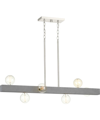 Mill Beam 6-Light Brushed Nickel/Faux Concrete Industrial Style Linear Island Chandelier Brushed Nickel