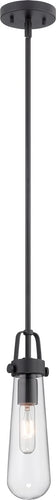 The 5"W Beaker 1-Light Pendant in Aged Bronze by Nuvo Lighting is a stunning addition to any home or office. This mini pendant light features a sleek, contemporary design that combines the timeless elegance of aged bronze with the modern appeal of clear glass. The pendant's shape is reminiscent of a classic beaker, adding a touch of scientific sophistication to your space. With its clean lines and minimalist aesthetic, this pendant light seamlessly blends into various interior styles, from industrial and modern to rustic and vintage.