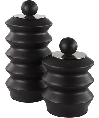 Accordion Black Wood Containers, Set of 2