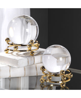 Crystal Spheres Elevated On Steel Bases Finished In A Polished, Plated Gold. Sizes: Sm-5x6x5, Lg-6x7x6Uttermost's Accessories Combine Premium Quality Materials With Unique High-style Design.With The Advanced Product Engineering And Packaging Reinforcement, Uttermost Maintains Some Of The Lowest Damage Rates In The Industry. Each Product Is Designed, Manufactured And Packaged With Shipping In Mind.
