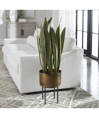 Accent Your Space With This Life-like Snake Plant, Featuring A Contemporary Antique Brass Pot Nested In A Matte Black Metal Stand.Uttermost's Botanicals Combine Premium Quality Materials With Unique High-style Design.With The Advanced Product Engineering And Packaging Reinforcement, Uttermost Maintains Some Of The Lowest Damage Rates In The Industry. Each Product Is Designed, Manufactured And Packaged With Shipping In Mind.
