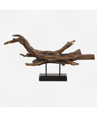 • Features: This captivating branch sculpture boasts a deep dark brown finish accented with metallic gold highlights, bringing a sense of nature and elegance into your space. artfully displayed on a matte black stand, this piece combines organic beauty with modern aesthetics, making it a striking focal point for any room.