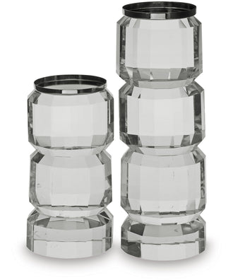 Clearly upscale and on-trend. Pairing crystal with silvertone metal accents, this candle holder set shines with a sophisticated sensibility. It's perfect for your contemporary design tastes.