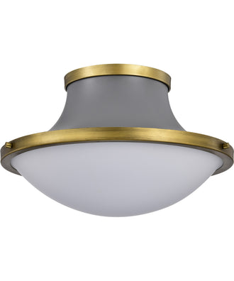 Nuvo Lighting presents the Lafayette 3 Light Flush Mount Fixture - 18 Inches - Gray Finish with Natural Brass Accents and White Opal Glass , to breathe new life into your home or office.