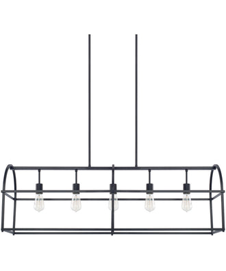 The 5-Light Island in Matte Black is a stunning addition to any home, offering an elegant blend of modern and industrial design. The fixture features a sleek matte black finish that exudes sophistication and timeless appeal. Its linear shape and open frame design provide a minimalist aesthetic that complements a variety of interior styles, from contemporary to rustic and everything in between. The clean lines and geometric structure make it a versatile piece that can enhance the visual appeal of any room.
