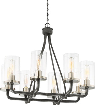 Nuvo lighting 25"W Sherwood 8-Light Chandelier Iron Black / Brushed Nickel Accents