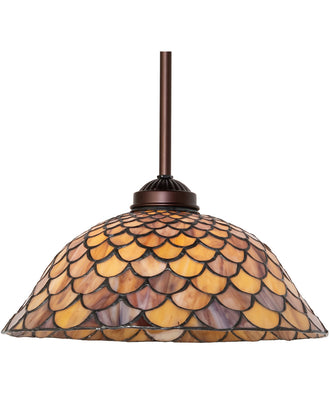 The Tiffany Fishscale Pendant showcases a stunning array of colors, including shades of Emerald, Sapphire, Mauve, and Beige. These colors are beautifully complemented by the Mahogany Bronze finish, which adds a touch of warmth and richness to the overall design. The combination of these colors and finishes creates a visually striking piece that will enhance any room's décor.