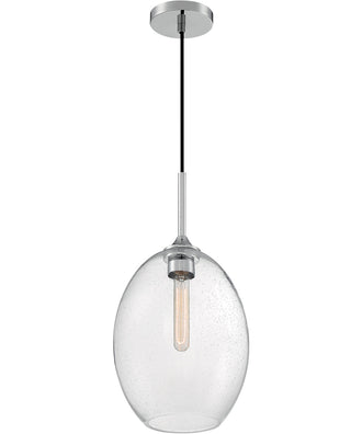 The 10"W Aria 1-Light Pendant in Polished Nickel is a stunning addition to any space, offering a blend of modern elegance and timeless appeal. The pendant features a clear seeded oval glass shade that creates a captivating visual effect, enhancing the ambiance of your room with its unique texture. The polished nickel finish adds a touch of sophistication, making it a versatile piece that complements various interior styles, from contemporary to transitional.
