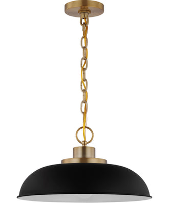 The Colony 1-Light Pendant by Nuvo Lighting brings a touch of sophistication and modern elegance to any space. Featuring a striking combination of matte black and burnished brass, this pendant light exudes a timeless charm that seamlessly blends with various interior styles. The sleek black shade contrasts beautifully with the warm brass accents, creating a visual appeal that is both contemporary and classic.