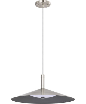 The Corrine 62-2083 LED pendant effortlessly marries style and substance, making it the epitome of understated modern design. Designed to captivate, the integrated LED features three CCT selectable options from warm white to natural light, softly diffusing the light with an acrylic diffuser and a dark gray reflector lining the steel shade. Finished in chic brushed nickel, with a contrasting braided rayon cord cove, continuing the polished aesthetic, sleek lines and minimalist silhouette making it a versatile addition to any space. Seamlessly blending into various interior styles, Corrine adorns your home as a statement piece that complements your discerning taste.