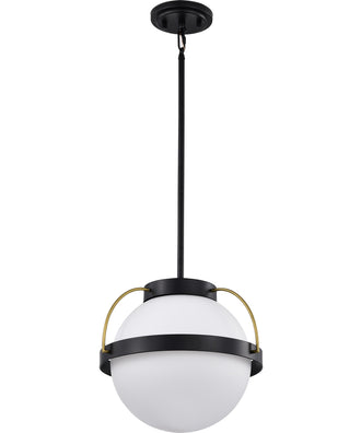 The Lakeshore 1-Light Pendant in Matte Black is a stunning addition to any home or office space. Its sleek, modern design features a spherical white opal glass shade encased in a matte black steel frame with natural brass accents. This sophisticated combination of materials and finishes creates a timeless piece that complements both contemporary and traditional decor styles.