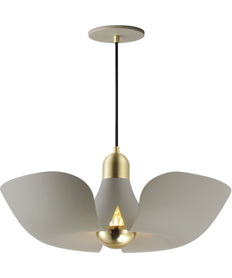Incurved metal petals of Storm Grey or White finish with Satin Brass caps make oversized biophilic light fixtures. Available as wall sconces or pendants, the various configurations provide playful forms both nostalgic or youthful. Pair with a white G25 lamp or reflector lamp to complete the look.