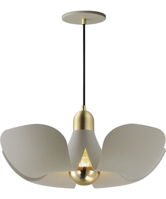 Incurved metal petals of Storm Grey or White finish with Satin Brass caps make oversized biophilic light fixtures. Available as wall sconces or pendants, the various configurations provide playful forms both nostalgic or youthful. Pair with a white G25 lamp or reflector lamp to complete the look.