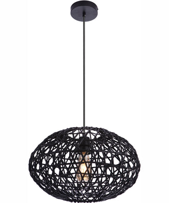 This pendant light features a flat black finish that exudes a contemporary charm. The shade is crafted from flat black rattan, giving it a natural yet refined appearance. The combination of iron and rattan materials not only ensures durability but also enhances the overall aesthetic appeal of the fixture. The flat black color seamlessly blends with both neutral and bold color palettes, making it a perfect fit for any room.