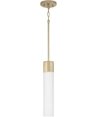 Sophisticated and stunning, the Sutton 1-Light Pendant in Soft Gold is a true testament to refined elegance. This pendant light features an elongated frosted glass shade that exudes a soft, ambient glow, perfect for creating a warm and inviting atmosphere in any room. The sleek cylindrical design is complemented by a champagne sheen of Soft Gold faceted band, adding a touch of luxury and sophistication to the overall aesthetic.