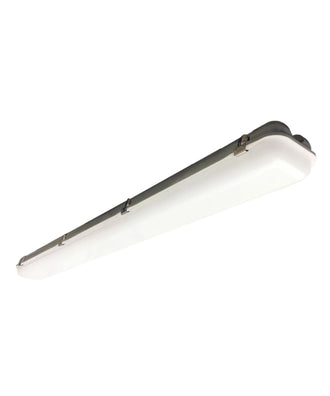 The 50"W Linear Vapor Tight 1-Light Integrated LED Light LightStrip Light Fixture by RP Lighting is a low-profile, cost-effective, and energy-efficient replacement for traditional fluorescent lights. This fixture features a full-length, gasketed polycarbonate lens and a single-piece non-corrosive polycarbonate body, ensuring durability and longevity. Designed to meet or exceed IP65 ratings against dust and pressurized water jets, it is ideal for commercial, industrial, and residential spaces where dirt, humidity, dust, and cold temperatures are prevalent.
