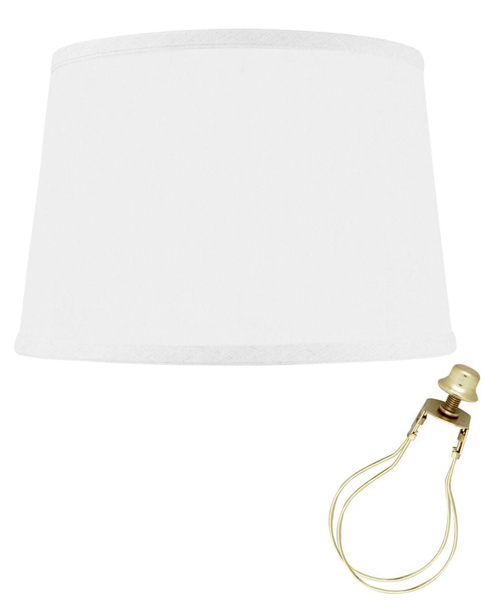 Enhance your living space with the refined touch of our 10x12x8" Clip-On Fitter Hardback Shallow Drum Lamp Shade in White Linen. Its durable construction, elegant design, and versatile style make it a must-have for any home. Order now and experience the perfect blend of functionality and aesthetics. Illuminate your space with a lamp shade that stands the test of time and style.