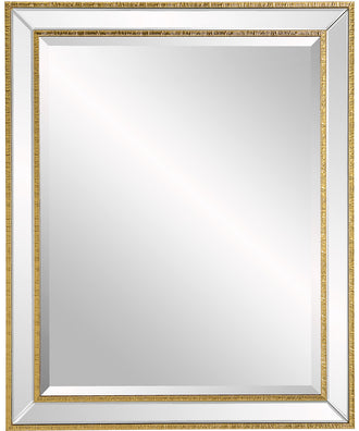 This elegant frame features beveled mirror panels, accented with a gold organic textured design that surrounds the frame. The inner mirror has a .75" bevel. May be hung either vertically or horizontally.