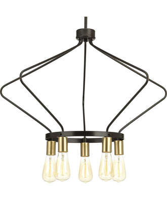 Fixtures in the Hangar collection are fun, light and airy pieces. Ideal for both casual and modern homes. Antique Bronze finish. Modern wire basket forms are enhanced by dual-toned accents. Chandelier uses five 60W max. medium base bulb (sold separately). Perfect showcase for vintage style light bulbs, including Progress Lighting's P7825-01 or P7827-01. Progress Lighting Design Series, a collection offering fashionable styles and affordable luxury. Ideal for welcoming guests and visitors in a foyer or entryway, as well as in dining room or traditional living room settings. A sophisticated, statement-making frame occupies a large visual space.