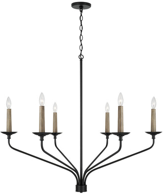 The Wilder 6-Light Chandelier seamlessly integrates into different room themes, from modern and contemporary to rustic and traditional. Its clean lines and sophisticated finish make it a perfect match for minimalist interiors, while the faux wood candle sleeves add a touch of natural charm for more rustic or farmhouse-inspired spaces. The chandelier's versatility allows it to be a focal point in any room, creating a harmonious blend of style and functionality.