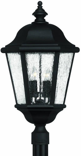 The 28"H Edgewater 4-Light Extra-Large Outdoor Post Lantern in Black is a stunning addition to any outdoor space, offering both functionality and timeless elegance. Crafted from cast aluminum with a sleek black finish, this lantern exudes a classic charm that complements various architectural styles, from traditional to contemporary. The clear seedy glass panels add a touch of sophistication, allowing the light to shine through beautifully while creating a warm and inviting ambiance.