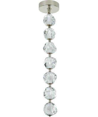 The Jackie 1-Light Pendant in Polished Nickel is a stunning example of contemporary elegance inspired by the luxurious design of a pearl necklace. This pendant light features a series of dimmable LED modules encased in beautifully organic-shaped clear acrylic globes. These globes are artfully linked together with polished nickel connectors, creating a sophisticated and eye-catching piece that adds a touch of modern luxury to any space.