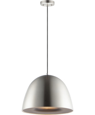 The Fungo 16 inch LED Pendant in Satin Nickel and Black is a stunning addition to any contemporary space. Its classic, dome-shaped design exudes elegance and sophistication, making it a perfect fit for modern interiors. The uni-body construction seamlessly blends the top and bottom, creating a cohesive and streamlined look that enhances its aesthetic appeal.