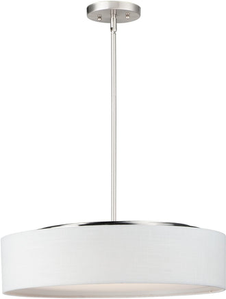 The 20"W Prime LED Pendant in Satin Nickel is a stunning blend of modern design and timeless elegance. The fixture features a sleek satin nickel finish that adds a touch of sophistication to any room. The pendant's drum shape, with its clean lines and minimalist aesthetic, ensures it complements a wide range of interior styles, from contemporary to transitional. The fabric shade, paired with an internal acrylic diffuser, provides a soft, inviting glow, making it a perfect centerpiece for your living space.