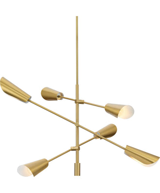 The Cornett 6-Light Contemporary Chandelier in Brushed Gold is a stunning piece that seamlessly blends timeless modern design with a touch of luxury. Its unique, dynamic angles are beautifully complemented by the softly sculpted curves of the matching metal reflector shades. The brushed gold finish adds a sophisticated touch, making it a perfect centerpiece for any room.