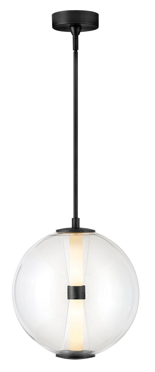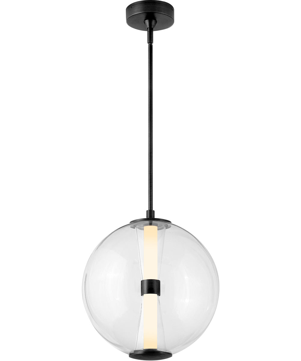 The Elin LED-Light Medium Globe Pendant in Black is a stunning centerpiece that embodies contemporary elegance. Its bold design features a trumpet-shaped clear outer glass that beautifully showcases the integrated LED inner light source. The sleek black finish adds a touch of sophistication, making it an ideal addition to modern and transitional interiors. Crafted with precision from high-quality steel, this pendant light promises durability and a timeless appeal.