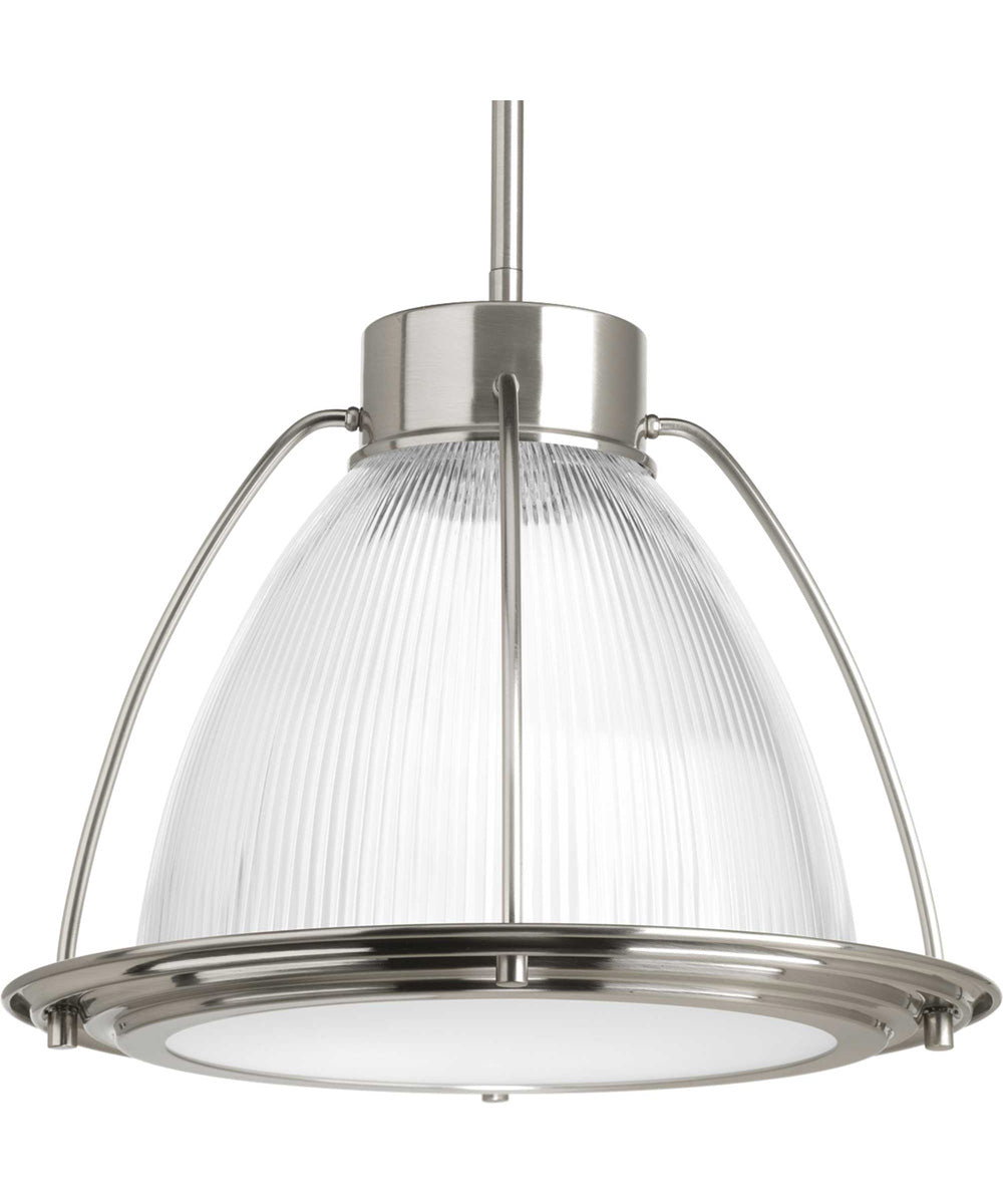 The Prismatic Glass LED 1-Light Pendant Light is a stunning addition to any home, featuring a bold and striking prismatic glass shade as the focal point of the fixture. The sleek brushed nickel cap and stems highlight the industrial styling, making this pendant light a perfect blend of modern and coastal aesthetics. Its robust steel construction ensures durability, while the plated finish adds a touch of sophistication to your space.