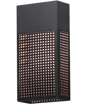 Modeled on open weave wicker stitchwork and constructed using synthetic rattan for longevity, this series of wall sconces are rated for both interiors and outdoors. Matte Black frames are paired with either Natural Rattan or a matching Black finish. This homespun concept pays homage to the outdoors with relevant styling and timeless appeal.