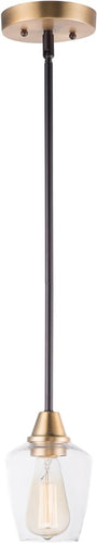 The 5"W Goblet 1-Light Mini Pendant in Bronze and Antique Brass is a stunning addition to any room, combining simplicity with elegance. The two-tone finish of bronze and antique brass adds a touch of sophistication and upscale charm to your space. The clear glass shade, inspired by stemware, provides a tailored profile that enhances the overall aesthetic. This pendant light is designed to complement a variety of interior styles, from modern to traditional, ensuring it fits seamlessly into your decor.