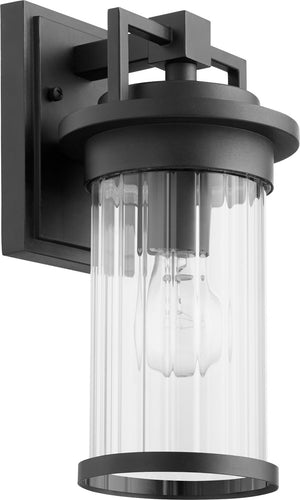 Introducing the 12"H Dimas 1-light Outdoor Wall Mount Light Fixture in Noir, a perfect blend of style and functionality. This exquisite light fixture is designed to elevate the aesthetic of any outdoor space while providing ample illumination. Crafted with attention to detail, the Dimas collection by Quorum showcases a soft contemporary style that seamlessly integrates into various decor themes.