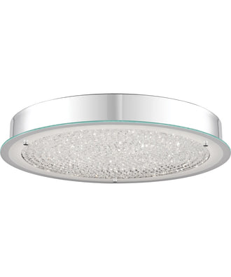 A simple yet stunning flush mount, the Blaze series is modern and sleek. The shimmering crystals “float” on a disk on glass that is frosted on the perimeter to enhance the striking design. The Polished Chrome finish on the base and accents add the perfect finishing touch.