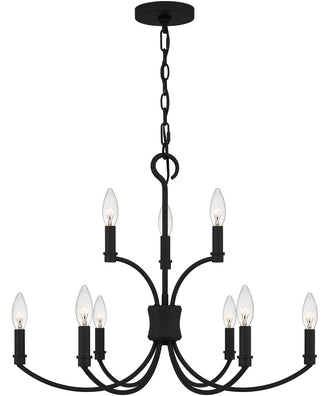 Available in antique white or matte black, the Briar chandelier brings high drama and elegance at once. Its two-tier construction creates a stylized fleur de lis shape, underscoring its subtle French Country style. Add in clear candelabra bulbs (not included) for a vintage lighting effect.
