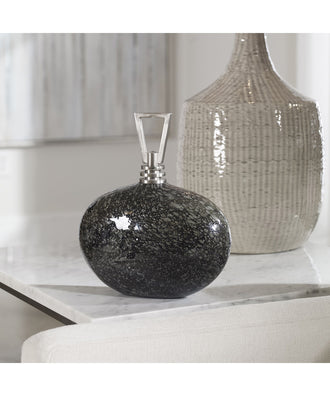 Showcasing A Masculine Look, This Bottle Features An Ebony And Charcoal Bubble Glass Base Accented By A Contemporary Brushed Nickel Plated Iron Lift-off Stopper.Uttermost's Bottles Combine Premium Quality Materials With Unique High-style Design.With The Advanced Product Engineering And Packaging Reinforcement, Uttermost Maintains Some Of The Lowest Damage Rates In The Industry. Each Product Is Designed, Manufactured And Packaged With Shipping In Mind.