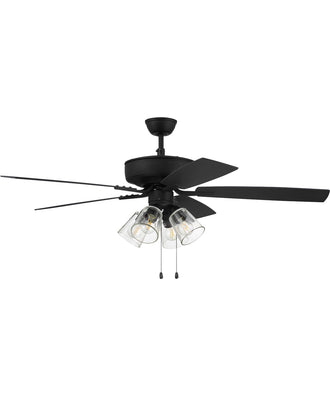 The ideal combination of excellent performance, exceptional value and timeless style, the NEW Craftmade Pro Plus 52" ceiling fan with clear glass four light with dimmable LED bulbs included featuring a clean motor, updated straight blade arms and canopy is built for performance. The dual mount, 3-speed, reversible fan includes custom 52" reversible blades. Optional 44" custom reversible blades and remote controls are available.