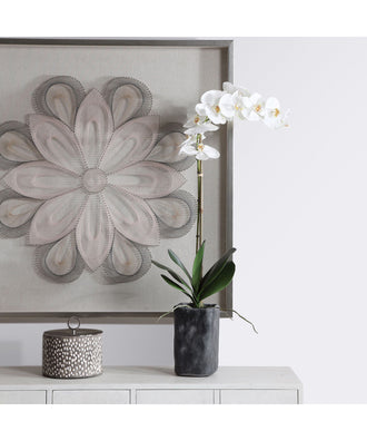 A Gracefully Arching Stem Of White Orchids Over A Bed Of Faux Potting Soil, Placed In A Contemporary Mottled Charcoal Gray Concrete Planter.Uttermost's Botanicals Combine Premium Quality Materials With Unique High-style Design.With The Advanced Product Engineering And Packaging Reinforcement, Uttermost Maintains Some Of The Lowest Damage Rates In The Industry. Each Product Is Designed, Manufactured And Packaged With Shipping In Mind.